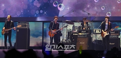 Last year was a meaningful year for us. Thank to all FNC staff and our parents and family. Also, thank you so much to BOICE who always protect us, we love you. We felt so sad because of earth quack in Japan last year. We always pray that everyone’s hope never end.CNBLUE performed 3 songs. Love, Love Girl and Intuition.